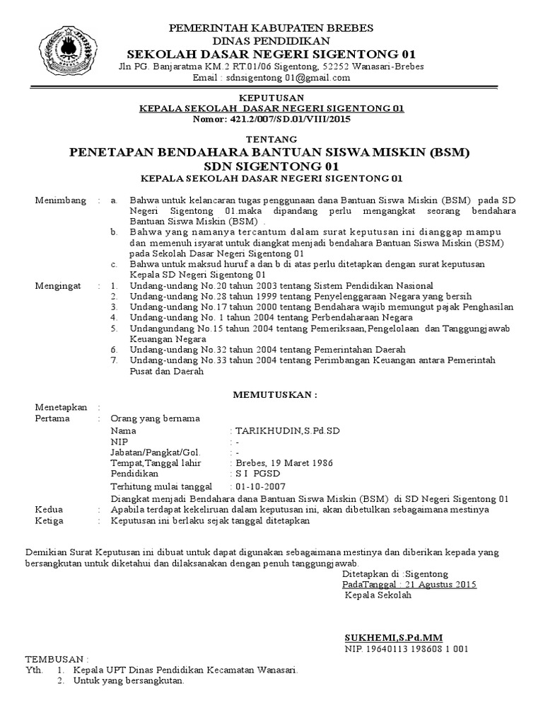 Keputusan kepala sd negeri patia 2 kecamatan patia nomor. Dengan rahmat tuhan yang maha esa. Contoh sk pengangkatan bendahara sekolah.docx.docx. Perangkat pembelajaran tik kelas 7 8 9 revisi 2019 2020. 42 567 1 contoh sk bendahara sekolah.